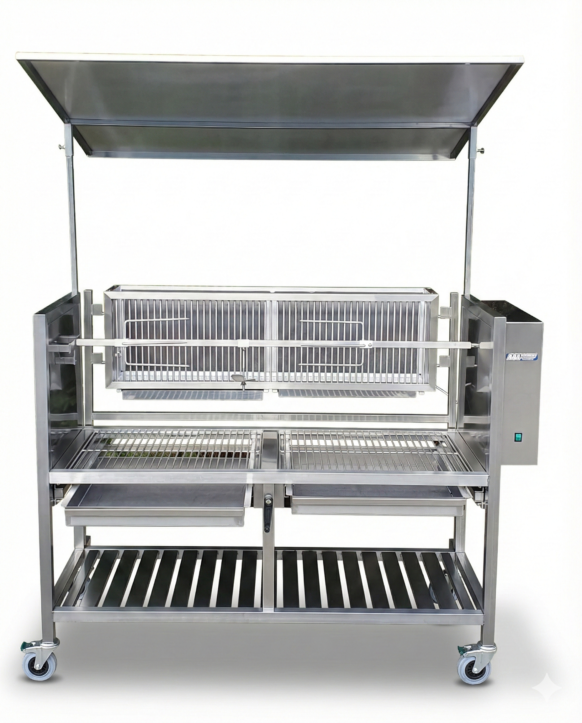 Grill gazowy na lawę wulkaniczną do opiekania kurczaków, prosiaków. Urządzenie wykonywane na zamówienie.