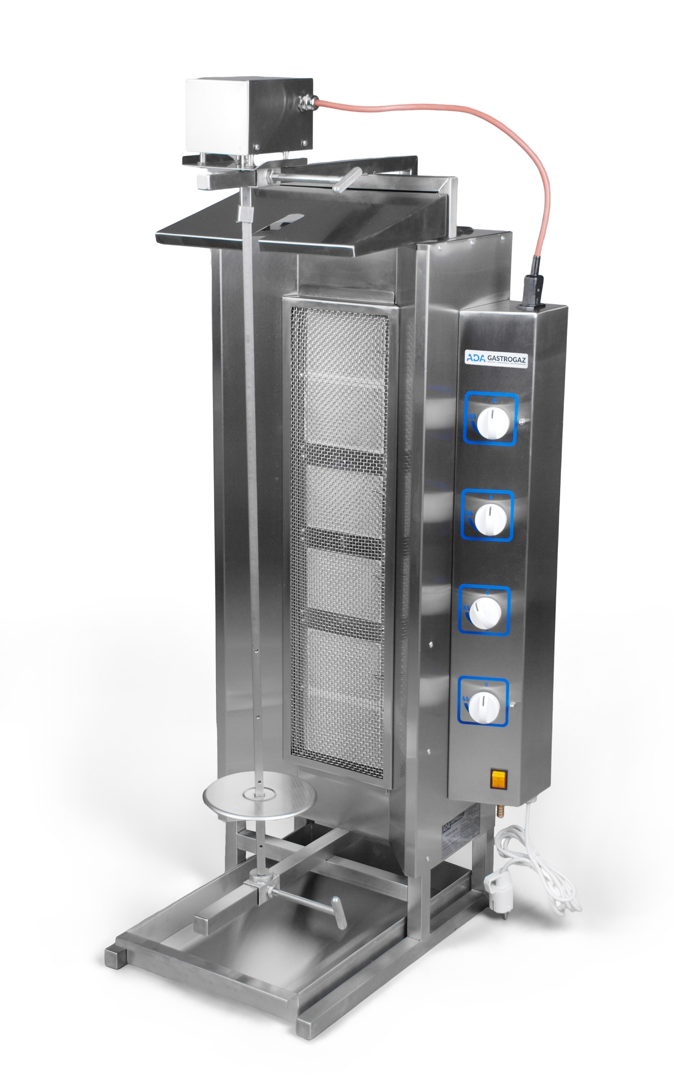 Opiekacze gazowe do gyrosa, kebaba ADA OG są urządzeniami przeznaczonymi do opiekania mięs umieszczonych na pionowym widelcu. Od 30 lat produkujemy profesjonalne opiekacze do kebabów, gyrosów. Proponujemy dwa rodzaje tych urządzeń: obudowane i nieobudowane.
