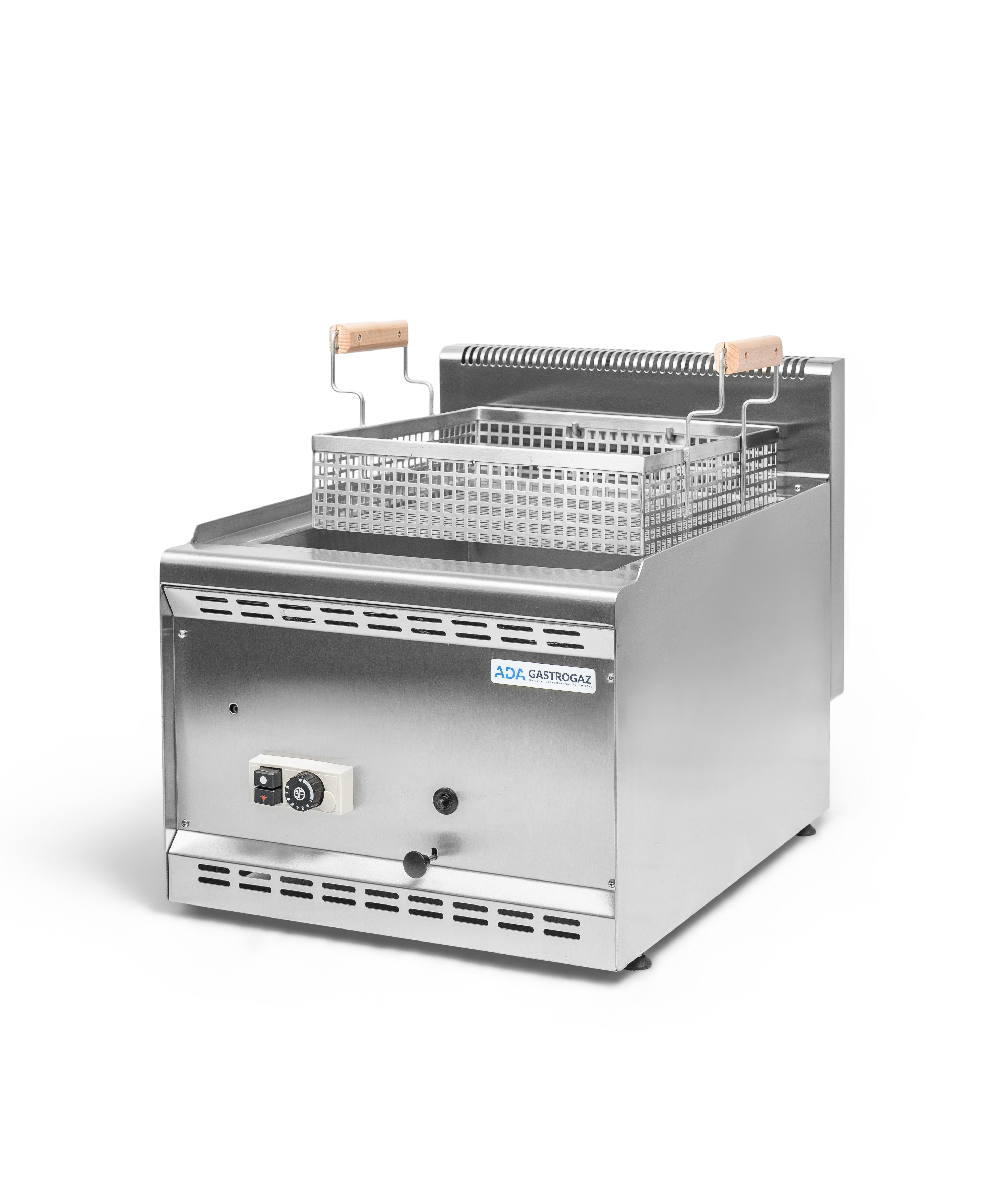 Smażalniki gazowe – frytownice ADA FG przeznaczone są głównie do smażenia ziemniaków, frytek, porcji kurczaka, mięsa i ryb, a także warzyw, pączków czy faworków. Frytownice ADA FG zbudowane są z wysokogatunkowej stali nierdzewnej kwasoodpornej gat. AISI 304. Nasze certyfikowane frytkownice charakteryzują się niezawodnością w eksploatacji, niewielkim zużyciem gazu przy generowaniu dużej mocy cieplnej oraz krótkim czasem smażenia, co w konsekwencji pozwala otrzymać soczysty i smaczny produkt.